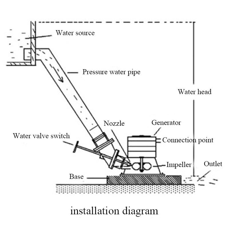 Mikroelektrownia wodna z turbiną wodną typu Turgo charakteryzuje się prostą konstrukcją, składającą się głównie z dyszy, wirnika, obudowy i wału głównego. Nie wymaga ona skomplikowanych urządzeń odprowadzających i kierujących przepływ wody, a jej całkowita objętość jest niewielka, co ułatwia transport i montaż.